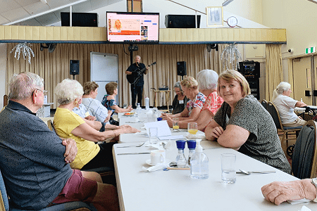 Our friendly staff member will greet you at the door and sign you into your activity. After signing in you will find a seat at one of the tables where there will be plenty of other seniors to socialize with. You will receive a puzzle as a bit of a warm up before the group is led into a group trivia game by our MC while you enjoy your morning tea. After the morning portion of mind games and plenty of conversation you will enjoy the delights of a live music entertainer. Around noon you will be served a hot meal and then you can enjoy your dessert with some tea or coffee.